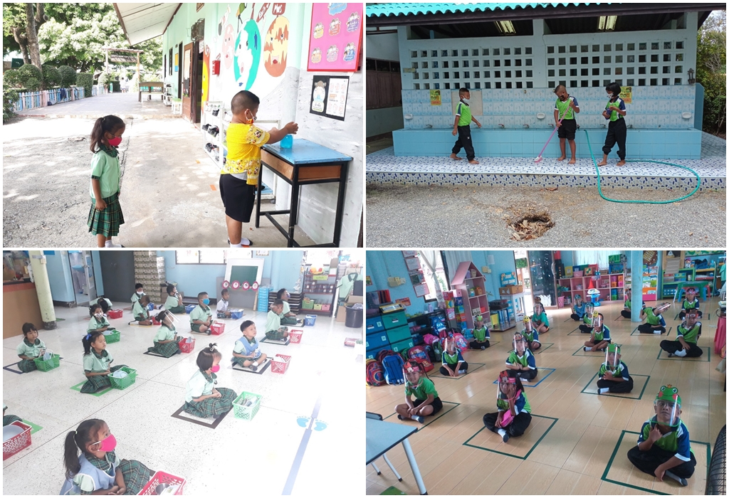 วันพุธที่ 1 กรกฎาคม 2563 โรงเรียนวัดบ่อพระอินทร์เปิดภาคเรียนที่ 1 ปีการศึกษา 2563 ตามวิถี New normal แบบโรงเรียนวัดบ่อพระอินทร์ โดยจัดมาตรการตามที่ สพฐ. และ สาธารณสุขกำหนด มีการกำหนดทางเข้าออกทางเดียว จุดวัดไข้และล้างมือด้วยเจลแอลกอฮอล์ก่อนเข้าโรงเรียน ล้างทำความสะอาด ฆ่าเชื้อของเล่นของใช้ กำหนดระยะห่าง แจก หน้ากากผ้าอนามัย และ face shield ล้างมือก่อนรับประทานอาหาร กำหนดสถานที่รับประทานอาหารกลางวัน เพื่อความปลอดภัยของนักเรียนทุกคน ขอขอบคุณ ฝ่ายปกครองนำโดย ผู้ใหญ่สำเนาว์ อภิพงษ์ ผู้ใหญ่บ้านหมู่ 7 ประธานคณะกรรมการสถานศึกษา ฝ่ายสาธารณสุขนำโดย รองฯ อุไร เกษมศรี (รองฯ น้อย) รองนายกเทศมนตรีเทศบาลตำบลสร่างโศก ที่ปรึกษาคณะกรรมการสถานศึกษา อสม.หมู่ที่ 7 คณะกรรมการสถานศึกษาและที่ปรึกษาทุกท่าน ที่สนุน ดูแลลูกหลานบ่อพระอินทร์ด้วยความดียิ่งเสมอมา
