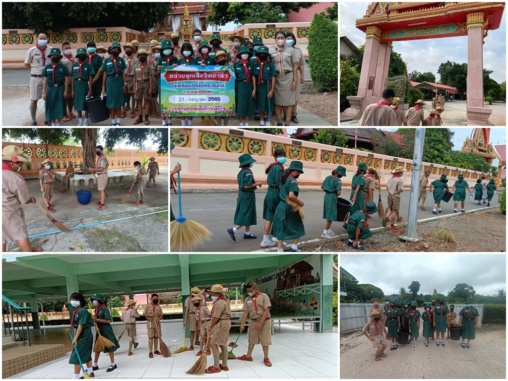 วันพฤหัสบดีที่ 21 กรกฎาคม 2565 หน่วยลูกเสือจิตอาสาพระราชทานโรงเรียนวัดบ่อพระอินทร์ จัดกิจกรรมพัฒนาโรงเรียน ชุมชน และวัดบ่อพระอินทร์ โดยการทำความสะอาดเก็บขยะ เพื่อให้เกิดความสะอาดเรียบร้อย แนะแนวเรื่อง กิจกรรมส่งเสริมสุขภาพการออกกำลังกาย การกำจัดเหา สนับสนุนโดย สปสช.เทศบาลตำบลสร่างโศก โครงการอบรมเชิงปฏิบัติการการถอดบทเรียนการนิเทศโดยใช้การโค้ชของครูพี่เลี้ยงนึกศึกษาฝึกประสบการณ์วิชาชีพครู
